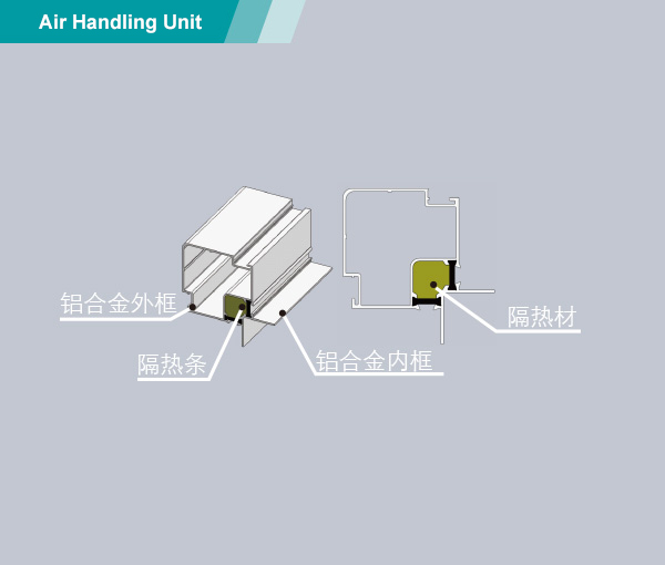 leyu.乐鱼新一代MAH组合式空气处理机,艾洛斯(Aiolos)系列,采用防冷桥铝合金框架结构设计,面板与框架为压扣连接方式。